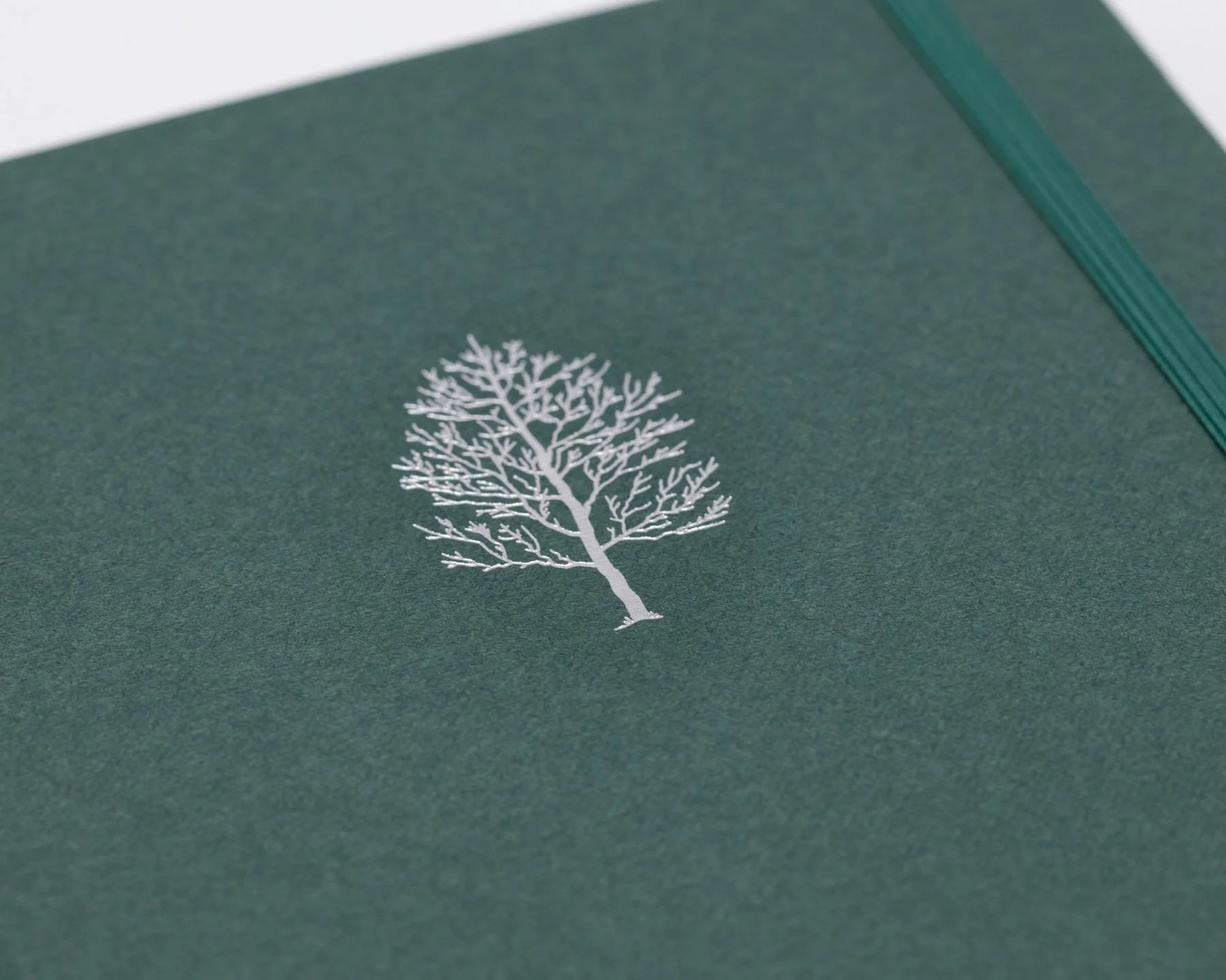 Pour mettre sur papier tous ce qui vous passe par la tête lors de vos balades en forêt, ce carnet à la couverture rigide format A5 gris graphite, est orné d'un arbre estampillé en feuille d'argent sur sa couverture.