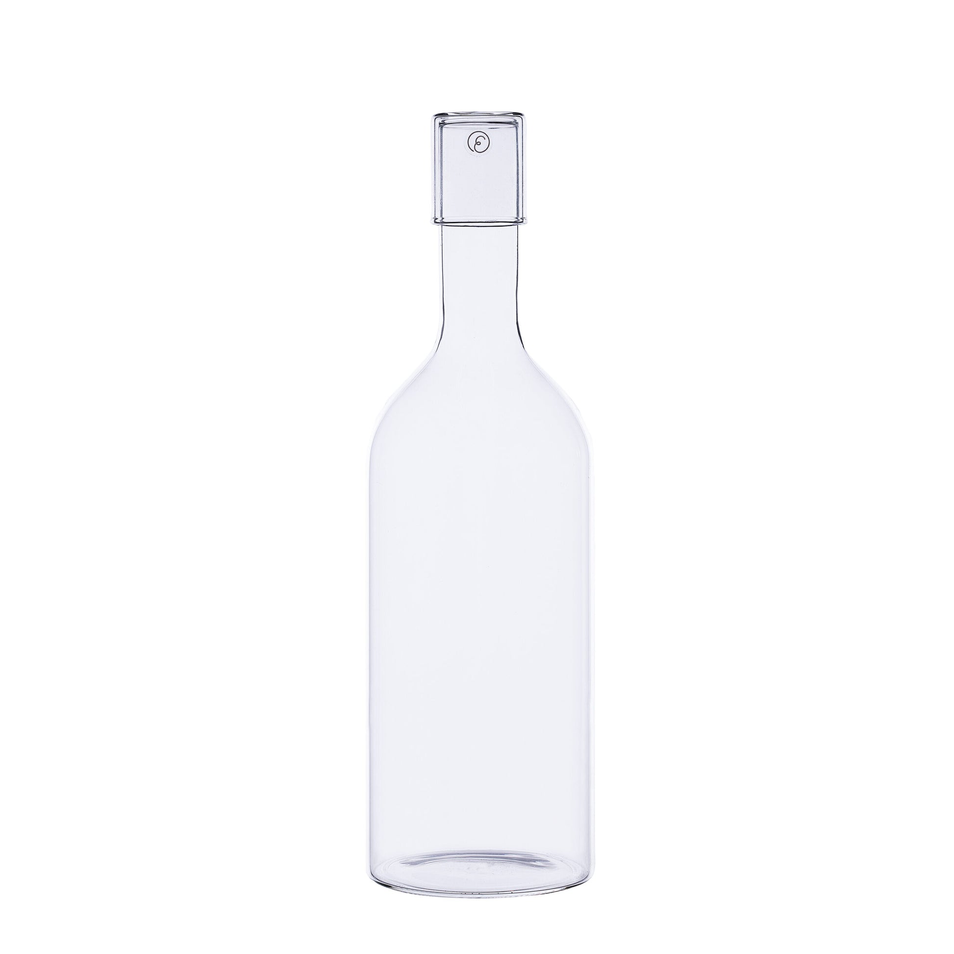 Bouteille avec bouchon en verre, simple, sans fioritures. À utiliser comme carafe ou comme soliflore.