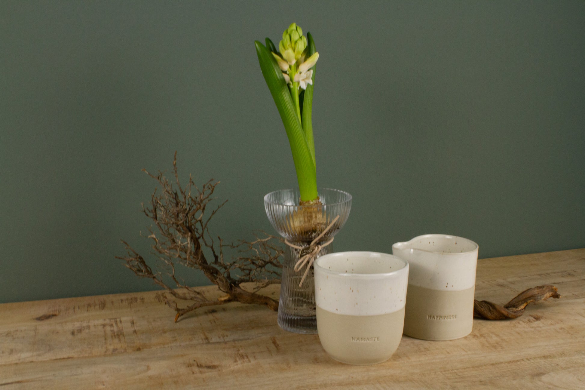 Petit pot en faïence fait à la main au Portugal. Estampage Happiness.